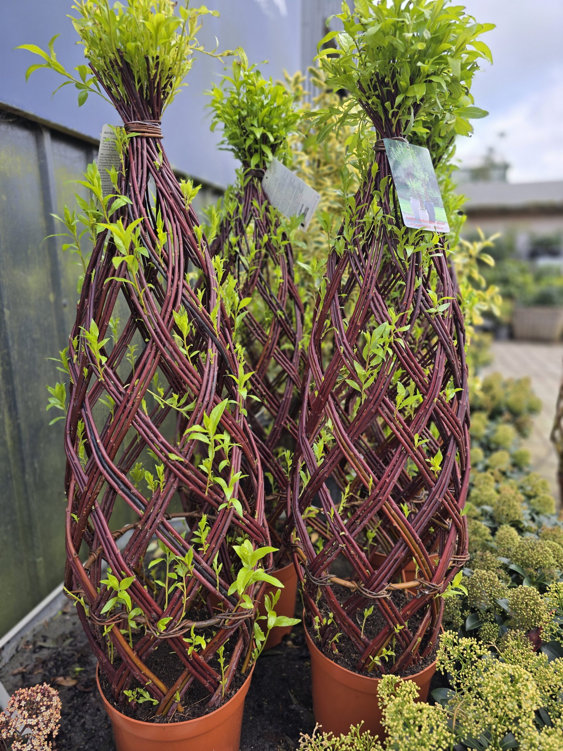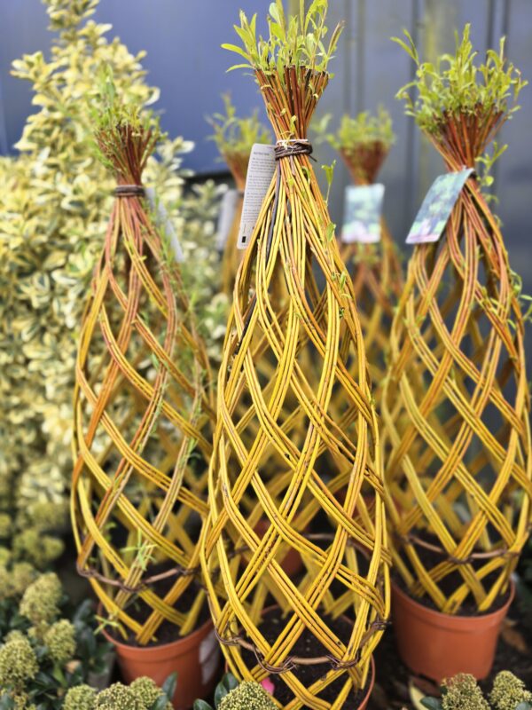 - During the growing season, you can lightly trim and tie in any long whips to maintain the woven form.